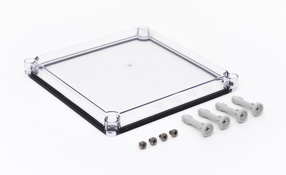 FIBOX EK SOLID dæksler er et ideelt valg til tavler og styring. Leveres i grå eller transparent. Inkluderer fingerskruer og hængsler.