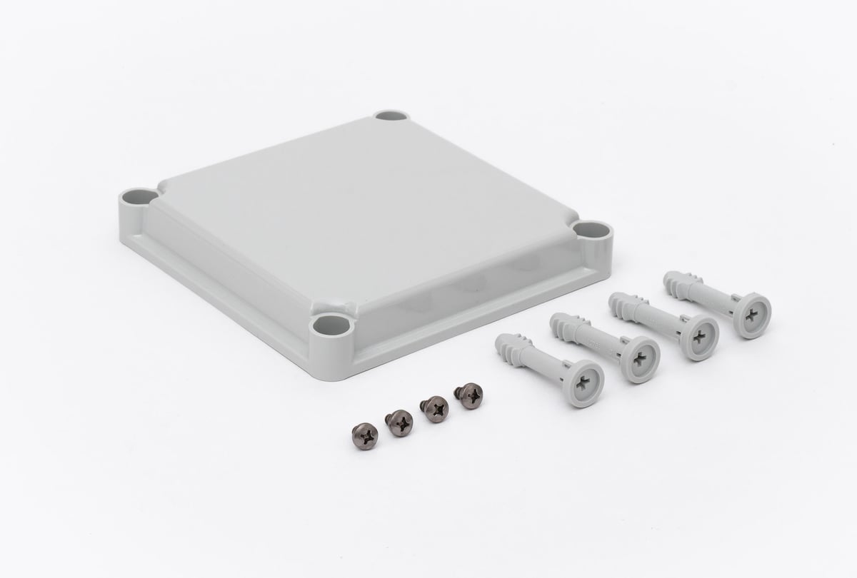 Dæksel i grå polycarbonat, 190x190x30 mm. Passer til EK kassebund EKHA eller EKHS. IP67-klassificeret.