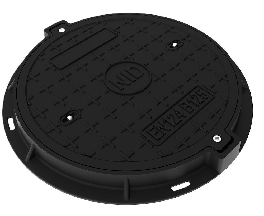 Ø425 dæksel med fast karm og 2 skruelåse. 1,5t. SMC Komposit.