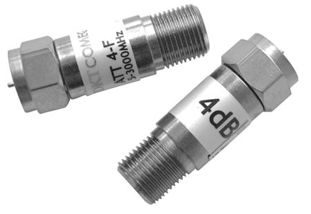Koaksialt dæmpeled med F-stik (han-hun). Dæmper i frekvensområdet 5-3000 MHz. Med løs omløber for nemmere installation.