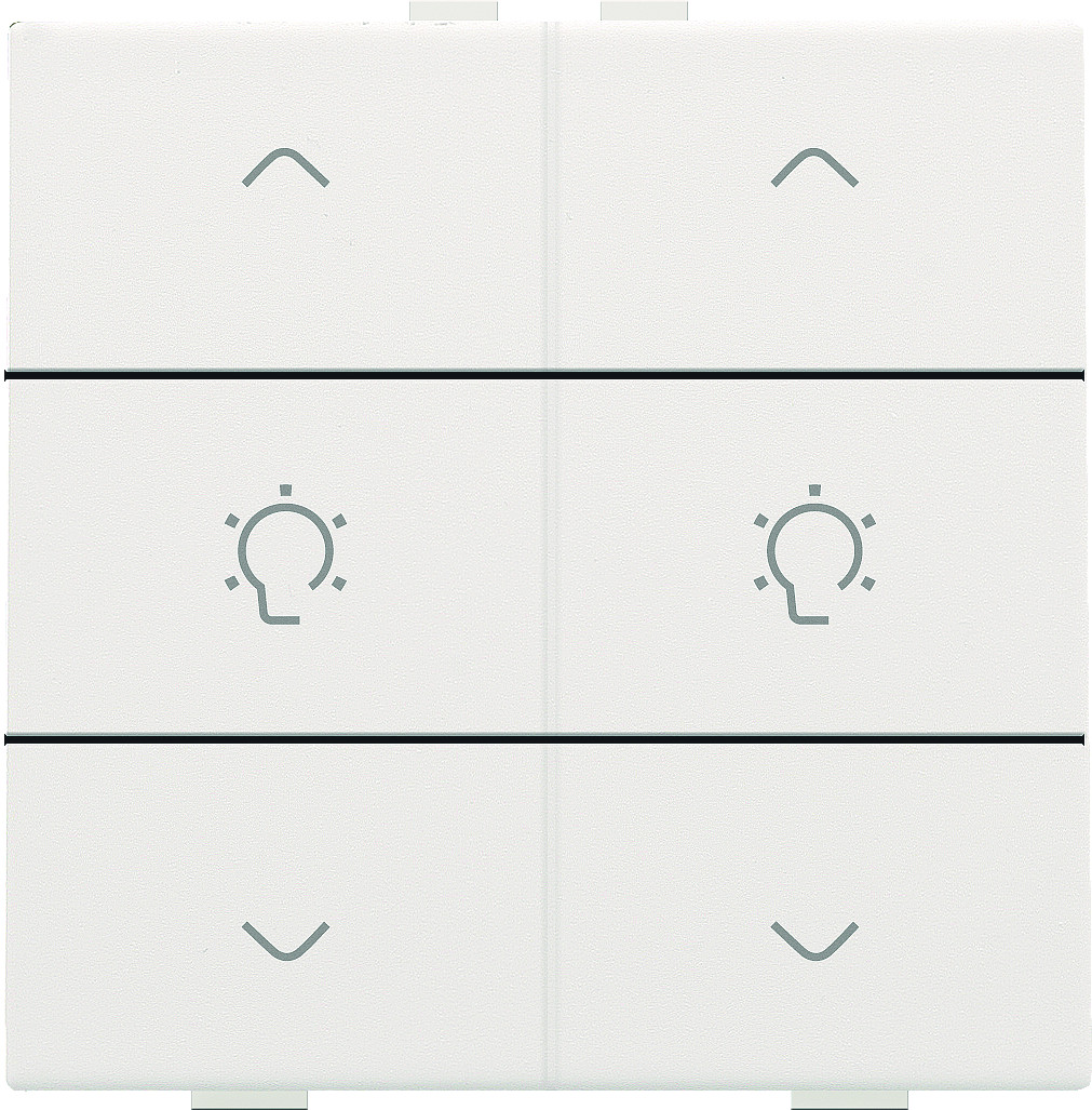 Dæmpertryk til lysstyring af 2 lyskredse. Nem fastgørelse på vægmonteret busprint med klikmekanisme. Inkl. tangent. Findes i flere farver.