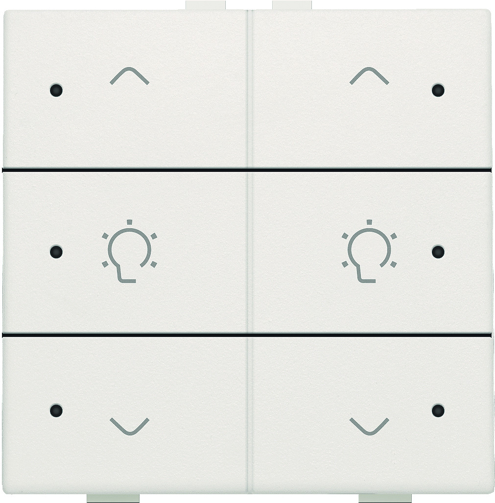 Dæmpertryk til lysstyring af 2 lyskredse. Med LED-indikator og klikmekanisme for nem montering på væg. Leveres med tangent og fås i flere farver.