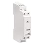 Relæmodulet tilsluttes nemt DALI-bussen og monteres på en DIN-skinne i tavlen. Det forsynes direkte fra DALI-bussen, hvilket eliminerer behovet for en ekstra strømforsyning.