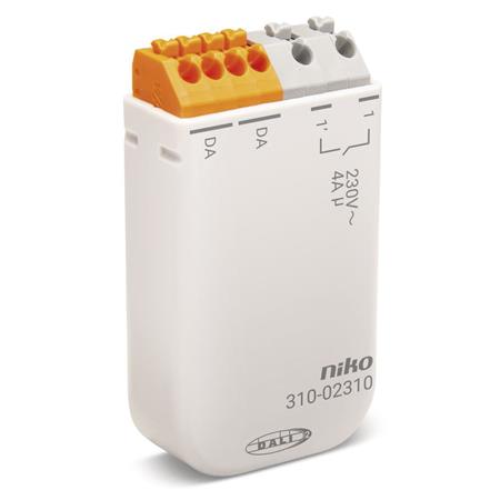 Med Niko detector tool appen kan modulet nemt kobles på DALI-bussen, som forsyner det direkte, så en ekstra strømforsyning er ikke nødvendig. Relæmodulet har et lille, kompakt design, så det let kan monteres i lampeudtag eller monteringsdåse.