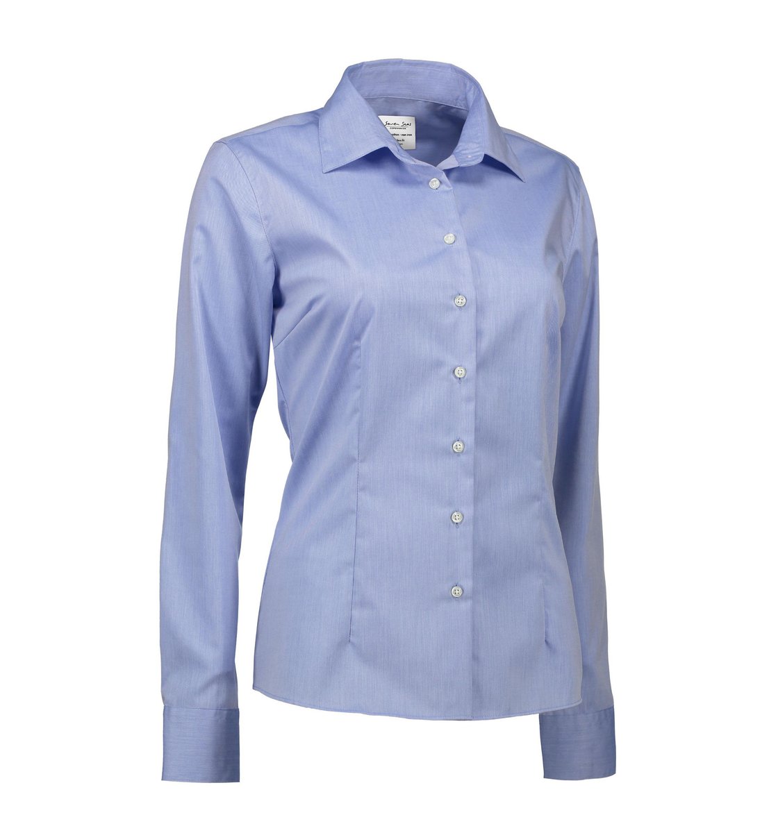 Skjorten er designet som en klassisk damemodel, men med en moderne silhuet, der giver en behagelig pasform og et stilfuldt udseende. Den lyseblå farve og den fine twill-kvalitet gør den ideel til professionelle sammenhænge.