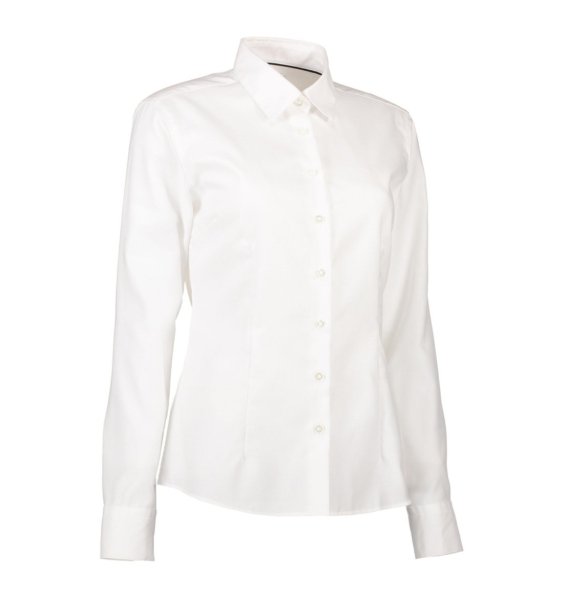 Elegant business-skjorte i ekstra blød Oxford-metervare med forbedret Non Iron kvalitet. Klassisk damemodel med moderne silhuet og behagelig pasform.