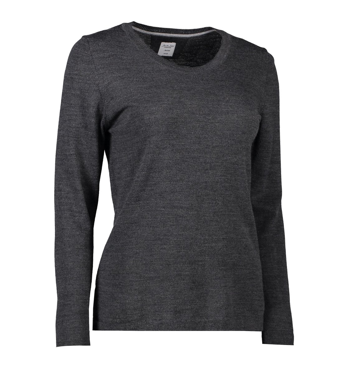 Elegant dame pullover med rund hals i blød merino uld. Detaljer ved hals og skuldre giver et klassisk udtryk. Perfekt til arbejde og fritid.