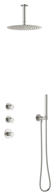 Dette Damixa Iris termostatbatteri er et komplet brusesystem designet til indbygning. Med sin elegante stålfinish og funktionelle design, tilbyder det en stilfuld og praktisk løsning til dit badeværelse.