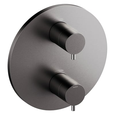 Damixa Silhouet TMC indbygning yderdele med rund Ø202 mm i børstet graphite grey (PVD) overflade. Den særlige PVD-belægning giver en hårdere og mere robust overflade, der er ekstremt modstandsdygtig over for ridser, korrosion og misfarvning.