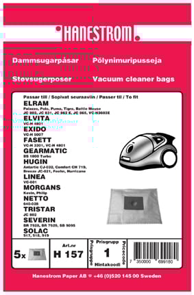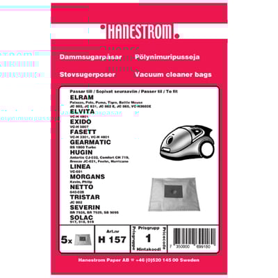 Dammsugarpåsar till ELRAM JC 802, JC 831, JC 862 från Hanestrom Paper.