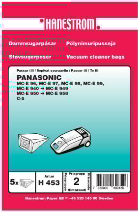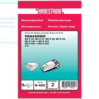 Støvsugerposer til PANASONIC MC-E 940 serien fra Hanestrom Paper.