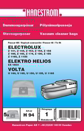 Støvsugerposer til VOLTA U 160 og U 165 støvsugere fra Hanestrom Paper.