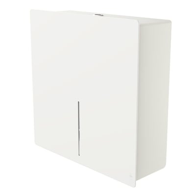 Toiletpapirholderen er fremstillet i pulverlakeret rustfrit stål. En slids på fronten gør det nemt at se, hvornår det er tid til genopfyldning.