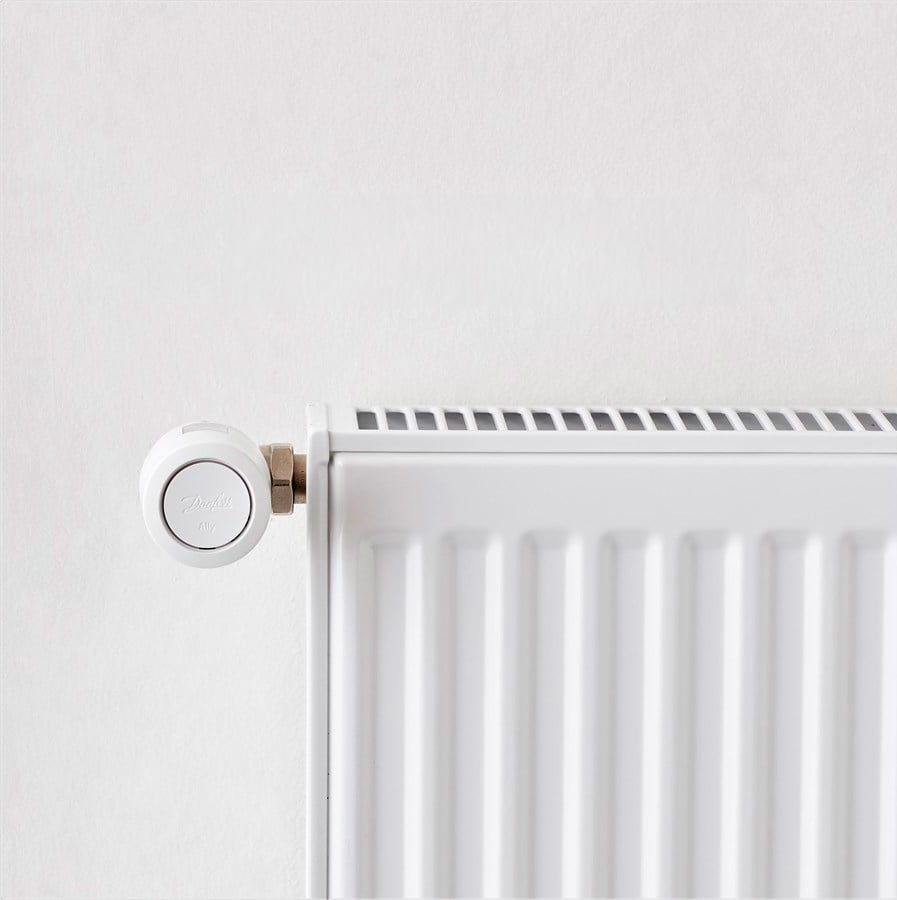Danfoss Ally™ programmerbar elektronisk radiatortermostat til intelligent varmestyring. Kompatibel med Danfoss Ally™ gateway eller kompatible Zigbee certificerede gateways.