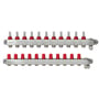 - Fleksibel udvidelse: Manifolden findes i moduler fra 2 til 12 varmekredse. Ved brug af samlestykker kan manifoldene kombineres i serie op til maksimalt 16 varmekredse.