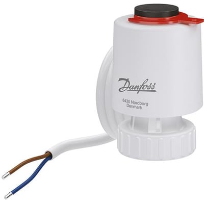 Danfoss TWA-Q termoaktuator til AB-QM DN10-32 ventiler. Regulerbar med on/off regulator, pulsbreddemodulation eller omskifter. 230V, NC, 1,2m kabel.