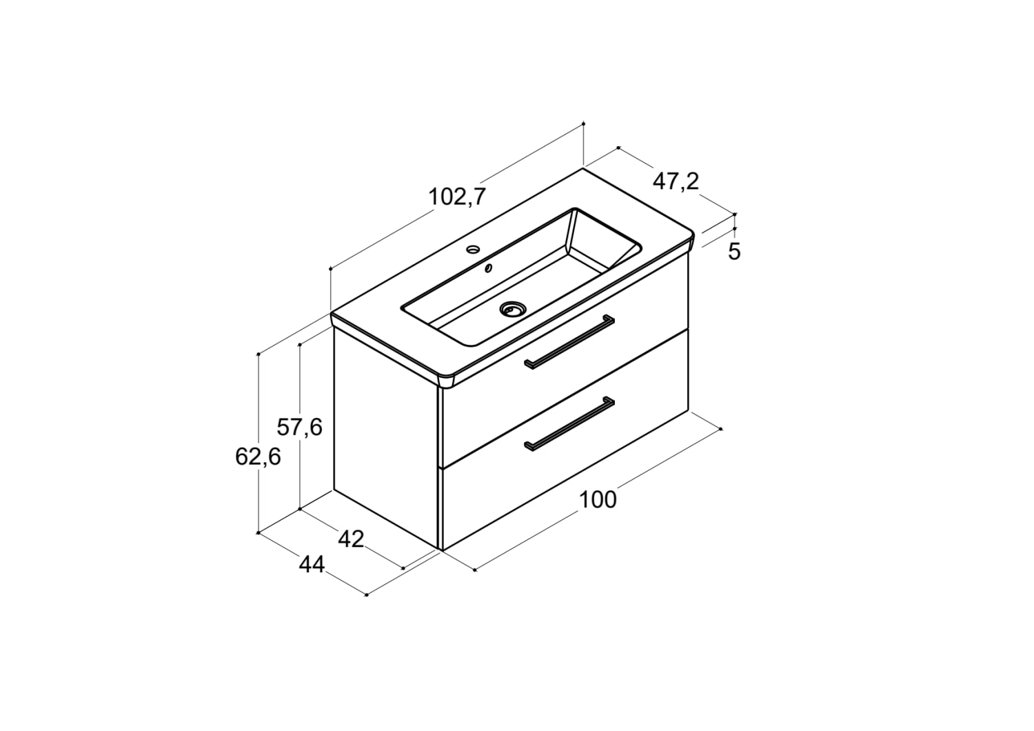 Møbelpakke Mido 2 skuffer, 102,7 cm, vask LARGHETTO, pinegrey - Dansani