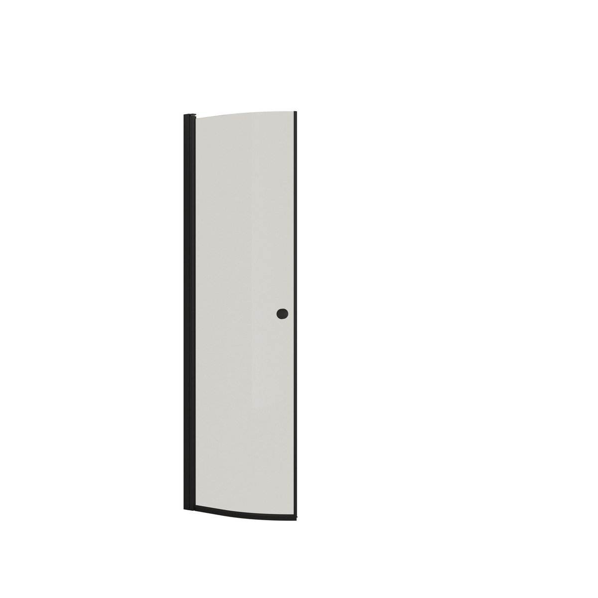 Elegant halvrund svingdør med klart glas og sort profil. H:200 cm, B:62-64 cm. EasyCare-behandlet glas for nem rengøring.