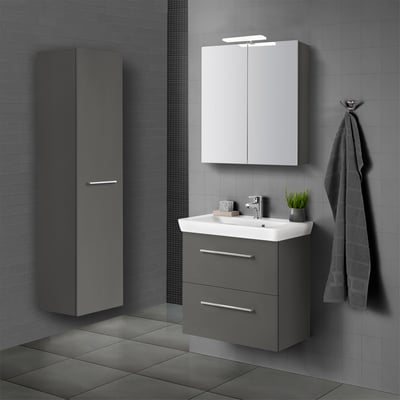 Dette Dansani Mido+ højskab er en stilfuld og praktisk løsning til opbevaring på badeværelset. Med sit moderne design og grå matte finish passer det ind i de fleste indretninger. Skabet er udstyret med en låge, der åbner til højre, og indeholder rigelig plads til toiletartikler, håndklæder og andre fornødenheder.