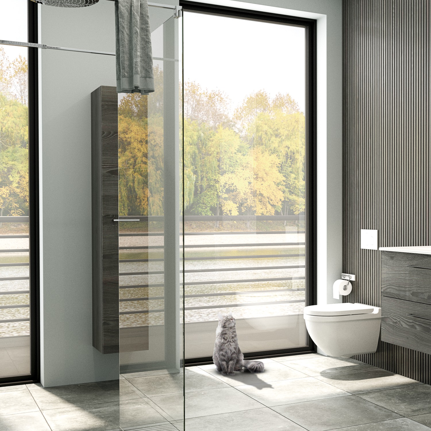 Med sit stilrene design og praktiske indretning er dette højskab en ideel løsning til opbevaring på badeværelset. Soft close-funktionen sikrer en behagelig og lydløs lukning hver gang.