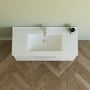 Amber håndvasken i sanitetsporcelæn er en moderne klassiker i tidløst design med høj bordplade og dybt, rummeligt bassin. Amber fås i flere størrelser, så du kan indrette både det store og lille badeværelse.