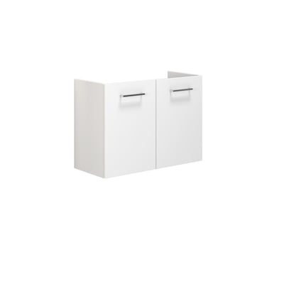 Elegant vaskeskab fra Dansani Mido+ serien med to låger, soft close og en stilren hvid højglans overflade. Måler 57,6 x 80 x 35 cm.