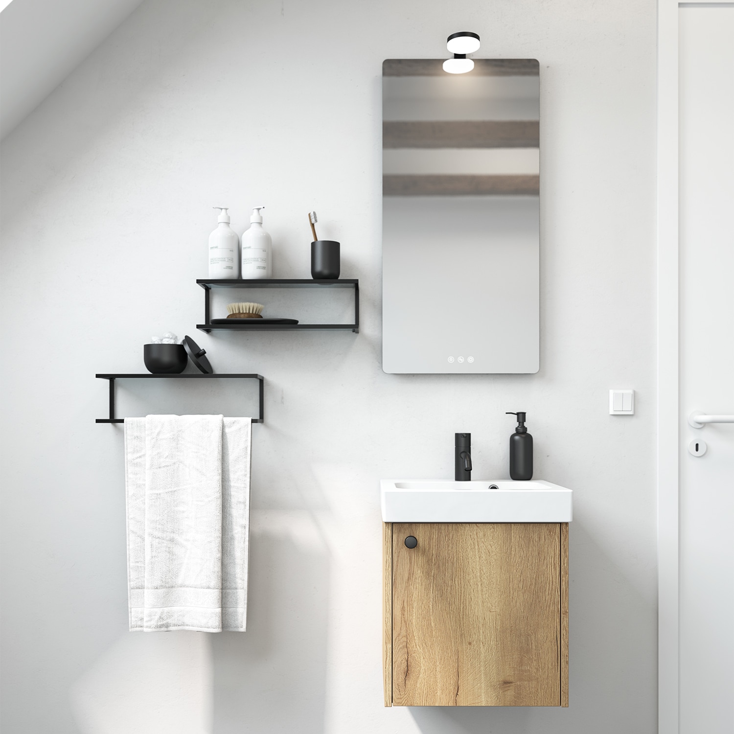 Med Jupiter LED lampen kan du nemt justere lysstyrken og farvenuancen via spejlets lysstyringspanel. Skab den perfekte atmosfære til enhver lejlighed, fra et klart, energisk lys til morgenrutinen til et blødt, afslappende lys til aftenen.