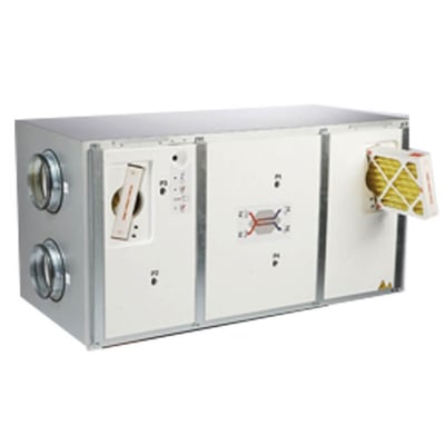 Effektivt ventilationsanlæg fra Dantherm med højtydende aluminiumsveksler. Driftområde 80-300 m3/h. Inkluderer fugtsensor, bypass og styrepanel.