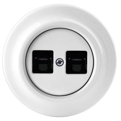 ABB Decento dataudtag med 2 x RJ45 porte i glans hvid porcelæn. Klassisk retro design kombineret med moderne Keystone teknologi. Leveres færdigmonteret.