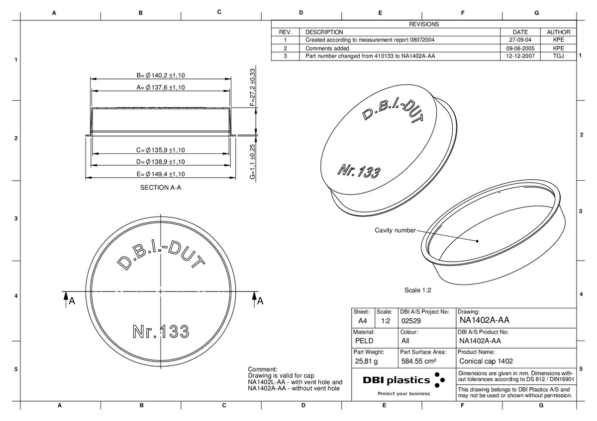 Dbi-dut nr 133 rød, NA1402A-AA00A - DBI Plastics