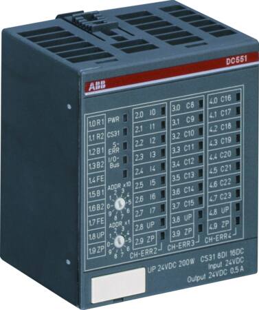 DC551-CS31 Busmodul med integreret CS31-interface. 8 DI / 16 DC, 24 V DC / 0,5 A, 1-leder. Husk at bestille basemodul TU505 eller TU506.