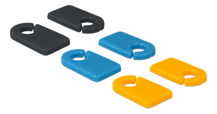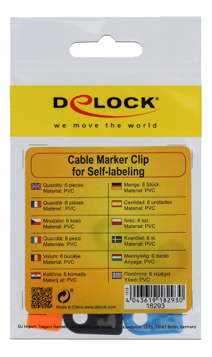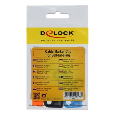 Disse kabelmarkør clips fra Delock kan mærkes individuelt eller forsynes med forskellige symboler for at skelne kabler fra hinanden. De kan nemt fastgøres til ethvert kabel.
