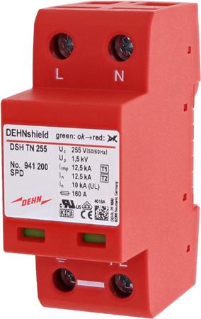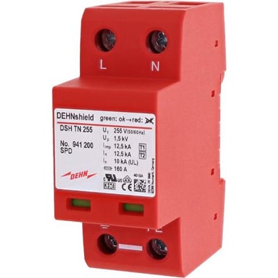 Kombineret og kompakt TN 2-polet (36mm) lynstrømsafleder og overspændingsbeskyttelse Type 1+2 uden fjernmelder.