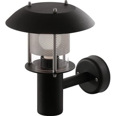 Elegant og tidløs Dekanon væglampe i sort (RAL 9005) med E27 fatning. Klasse I, IP44 og IK10. Giver et diffust lys med en fin fordeling.