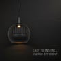 Pendellampen anvender en GU10 fatning og er ikke dæmpbar. Den er IP20-klassificeret, hvilket betyder, at den er beskyttet mod faste genstande større end 12,5 mm, men ikke mod fugt. Den brede konstruktion på 480 mm sikrer en god lysfordeling.
