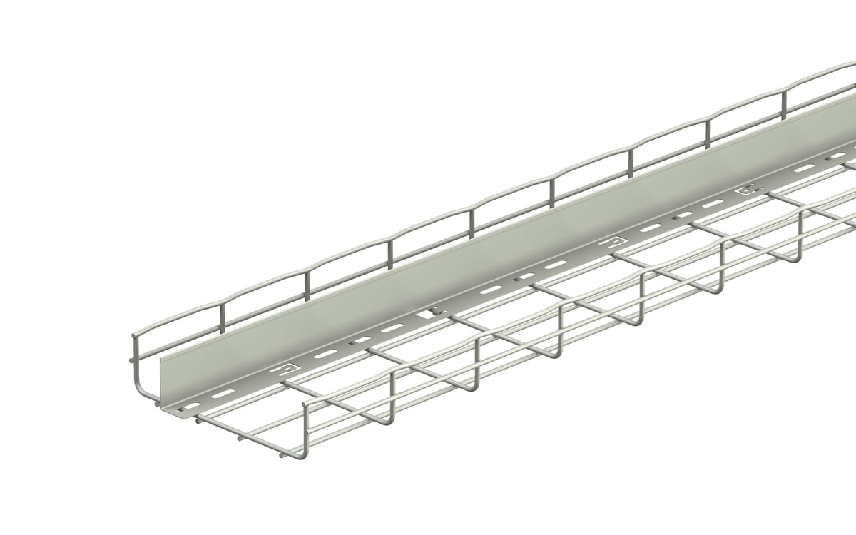 Deleskinnen fastgøres nemt i bunden af gitterbakken ved at ombukke udstansningerne rundt om trådene. For ekstra stabilitet kan der suppleres med spændebeslag type CGB.