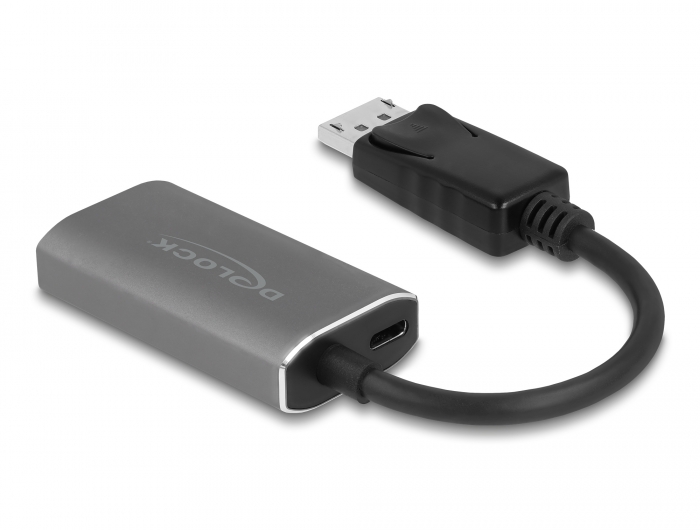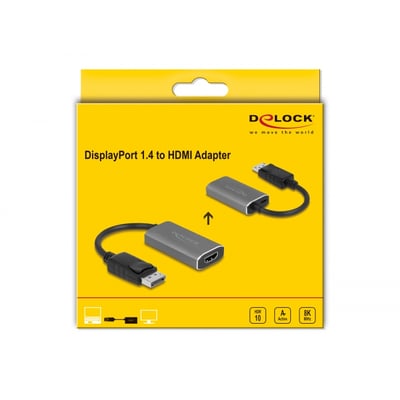 Denne adapter fra Delock muliggør tilslutning af en HDMI-skærm, projektor eller TV til en enhed med en ledig DisplayPort-interface. Takket være de kompakte dimensioner er adapteren ideel at have med på farten.