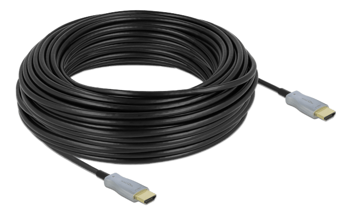 Delock kabel til at forbinde enheder med et HDMI interface, såsom skærme eller TV'er, til en PC eller bærbar. Det aktive optiske kabel er tyndt og kan transmittere signaler uden tab over lange afstande.