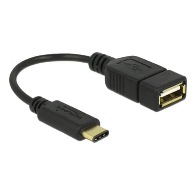 Adapterkabel med USB Type-C™ hanstik til USB Type A hunstik. Ideel til tilslutning af enheder med USB Type-C til en standard USB Type A port. Sort, 15 cm.