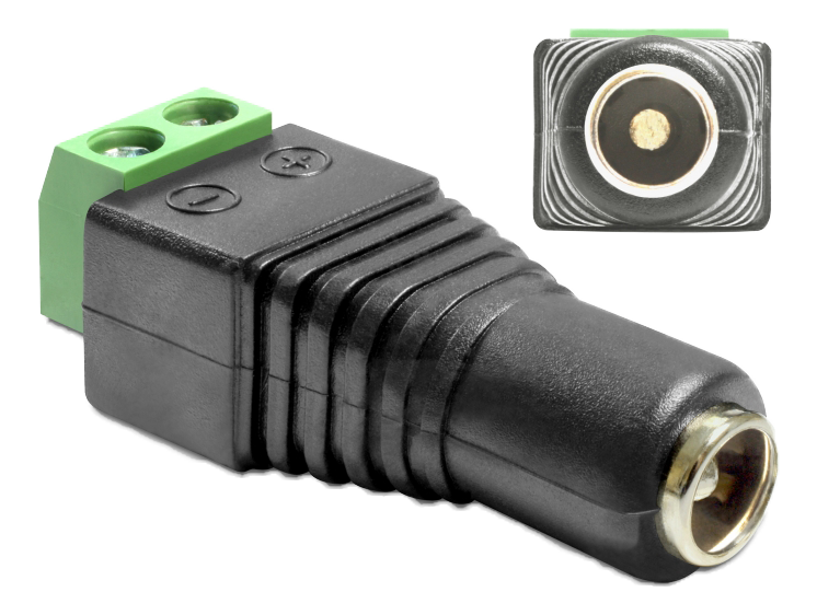 Delock terminal block adapter til tilslutning af ledninger. Velegnet til industri og hobby, f.eks. modeljernbaner. Strømforsyning via DC-stik.
