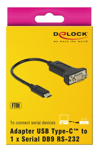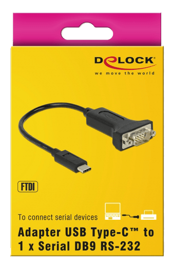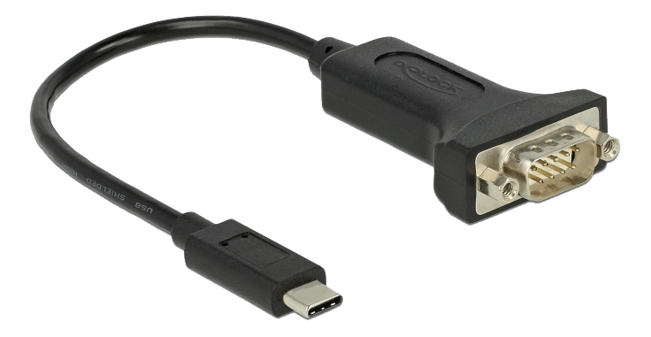 Denne USB Type-C til seriel adapter fra Delock giver en kompatibel RS-232 DB9-grænseflade til printere, måleinstrumenter, controllere, IoT-enheder m.m.
