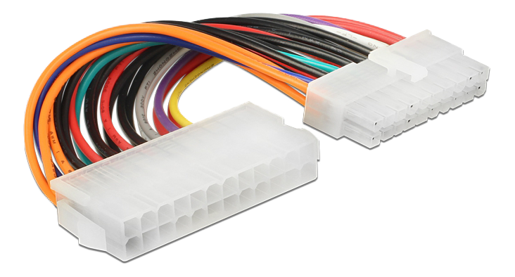 Forbind en ATX strømforsyning med 24-pin til et bundkort med 20-pin. Sort, 0,1 meter.
