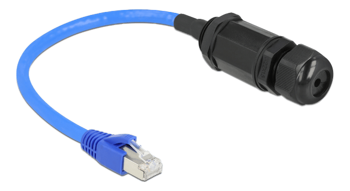 Dette vandtætte RJ45-sæt fra Delock beskytter Ethernet-forbindelsen på netværkskablet mod skader og vejrets påvirkninger. Den medfølgende kabelforskruning giver en vandtæt forsegling.