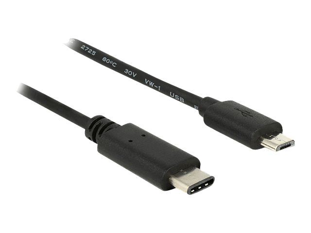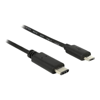 Dette USB-kabel fra Delock muliggør tilslutning mellem en enhed med et USB Type Micro-B-stik og en pc eller en bærbar computer udstyret med en ledig USB Type-C-port.