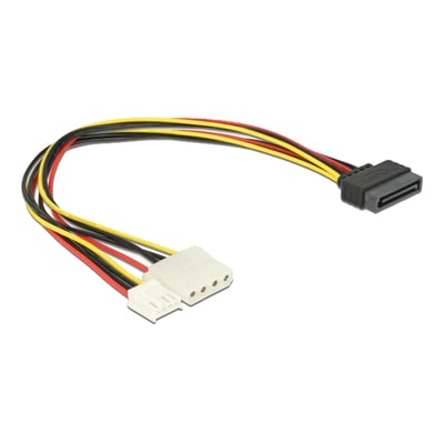Dette 30 cm Y-strømkabel fra Delock er designet til at udvide din strømforsynings muligheder. Med en 15-pin SATA-strømstik i den ene ende, kan du nemt tilslutte kablet til en ledig SATA-strømtilslutning på din strømforsyning. Kablet har derefter to udgange: en 4-pin Molex hun-stik og en ekstra 4-pin-stik. Dette gør det muligt at forsyne strøm til ældre IDE harddiske og diskettedrev, som ofte anvender Molex-stik.