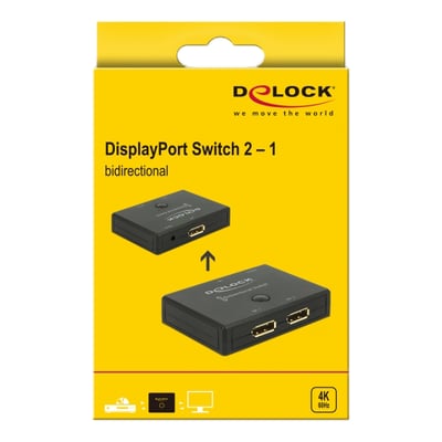 Skift nemt mellem to DisplayPort-kilder eller en kilde til to skærme med denne 2-1 switch. Understøtter 4K 60 Hz.