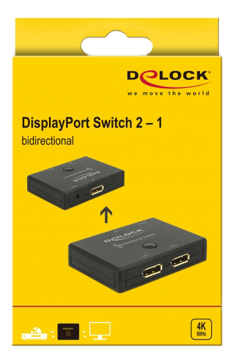 Denne DisplayPort 2-1 switch giver dig mulighed for at styre dine skærmsignaler effektivt. Med dens to-vejs funktionalitet kan du enten vælge mellem to DisplayPort-kilder til én skærm, eller sende signalet fra én DisplayPort-kilde til to forskellige skærme.