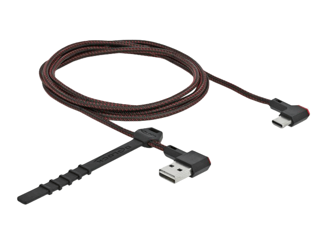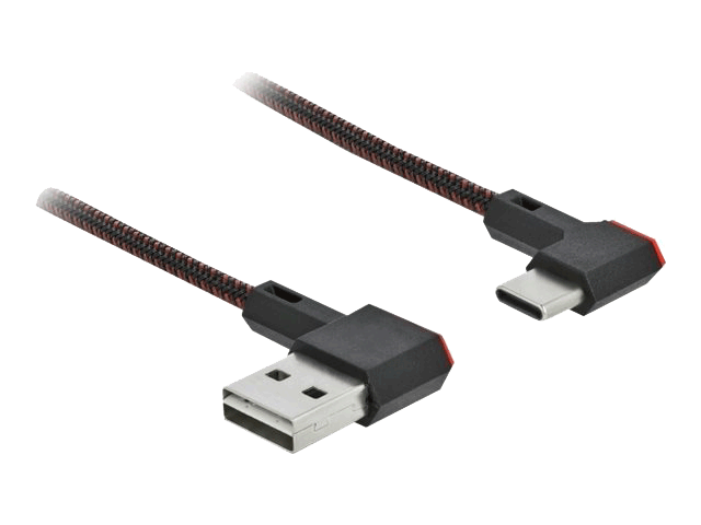 Delock EASY-USB 2.0 kabel med Type-A han og USB-C han, vinklet, 1,5 meter. Kan tilsluttes i begge retninger for nemmere brug.