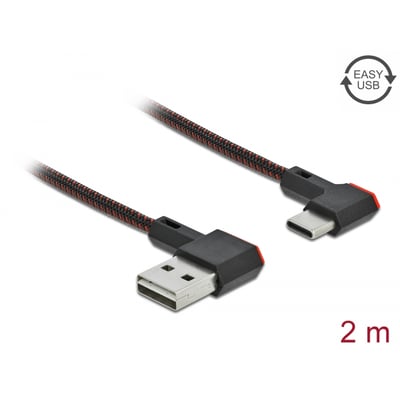 Dette kabel fra Delock har et Easy-USB Type-A hanstik og et USB-C hanstik, der kan tilsluttes den relevante USB hun-port i begge retninger. Dette gør tilslutningen nemmere, da hanstikket kan bruges på begge sider.