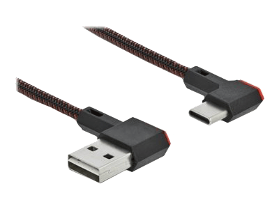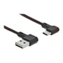 Delock kabel med Easy-USB Type-A han og USB-C han. Kan tilsluttes USB hun-port i begge retninger, hvilket gør det nemmere at tilslutte.